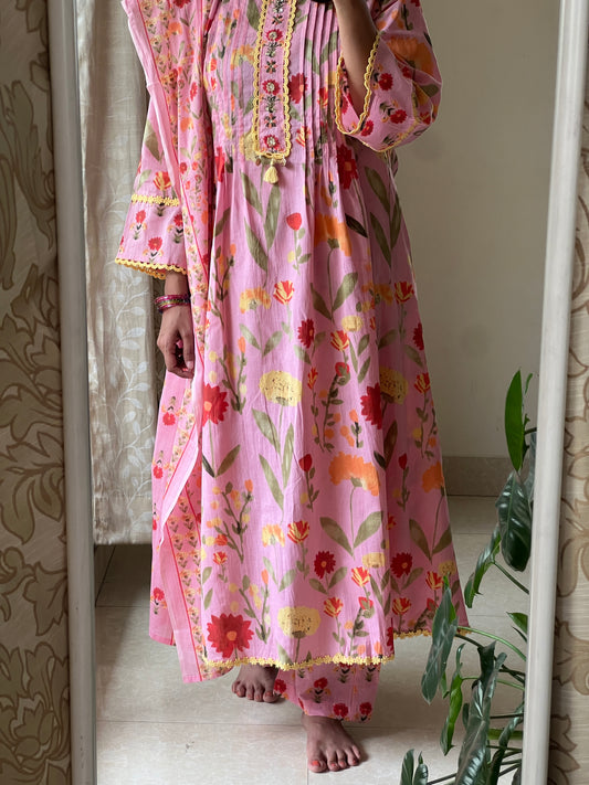 A0618 pink mul chanderi 3 piece suit with hand paint & hand embroidery detailing