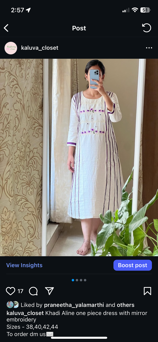 9038 Mulmul angaraka one piece dress with embroidery detailing