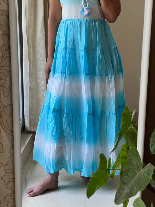 9098 - White & Blue one piece dress with Hand embroidery detailing