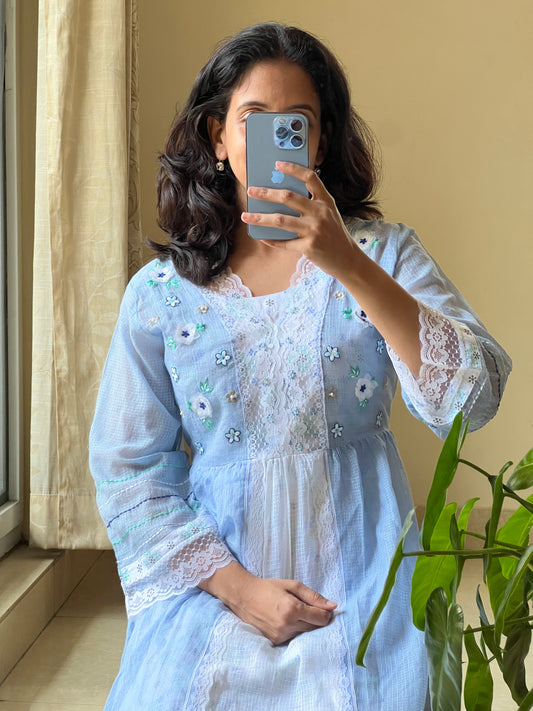 Bengal cotton Jamdani coat dress in beautiful Blue shade with