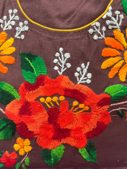Brown handloom cotton woollen work straight cut kurti