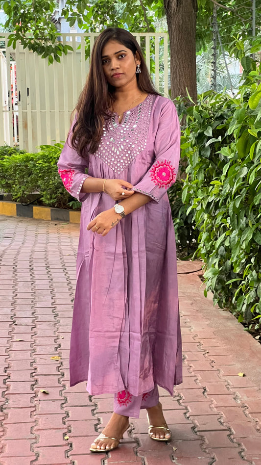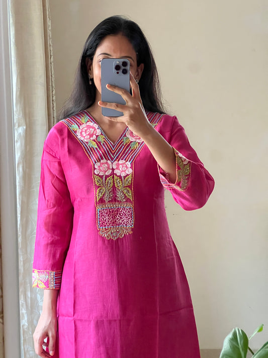 A0148 Pink mul chanderi one piece Dress with hand embroidery Detailing