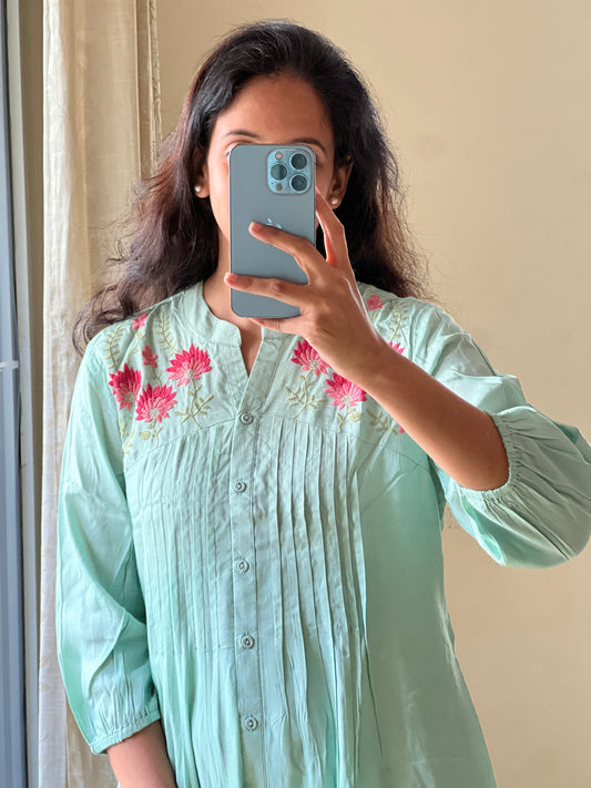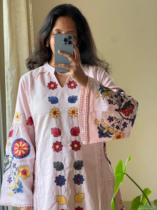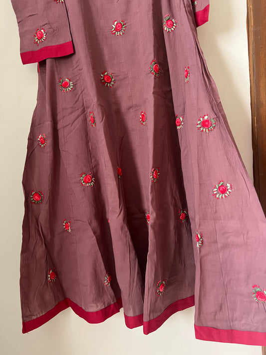 A0200 Mulmul khali model two piece dress with rose hand embroidery detailing