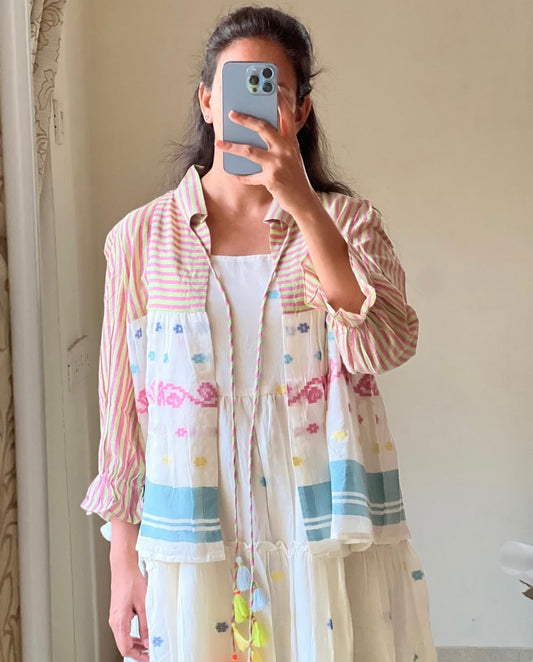 A0205 white Bengal cotton jamdani dress with shrug