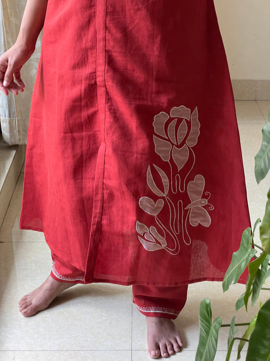 A0323 rust handloom cotton 2 piece set with applique work detailing