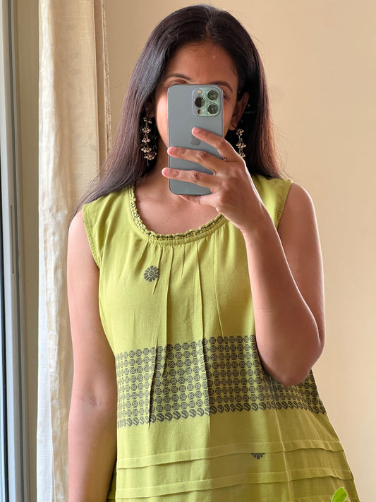 A0333 green Premium Mul chanderi 3 piece set with Applique work detailing