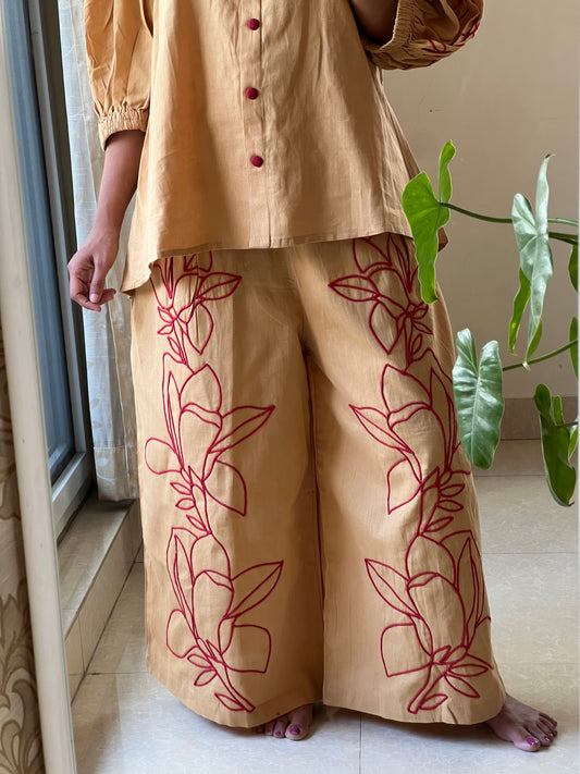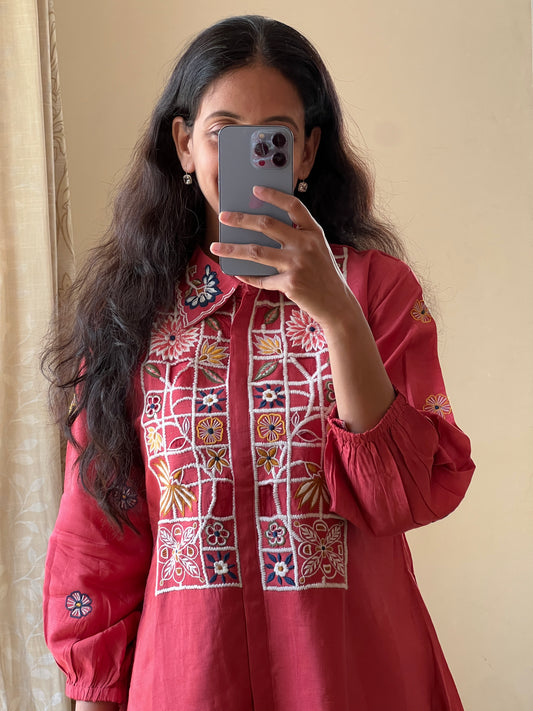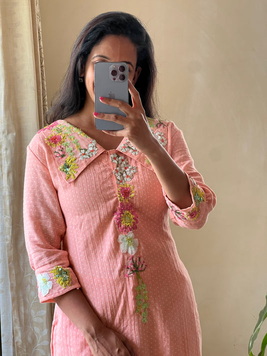 A0310 pink cotton coord set with machine and hand embroidery detailing