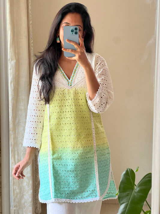 A0158 hakoba cotton green & blue shaded cotton shaded coord set