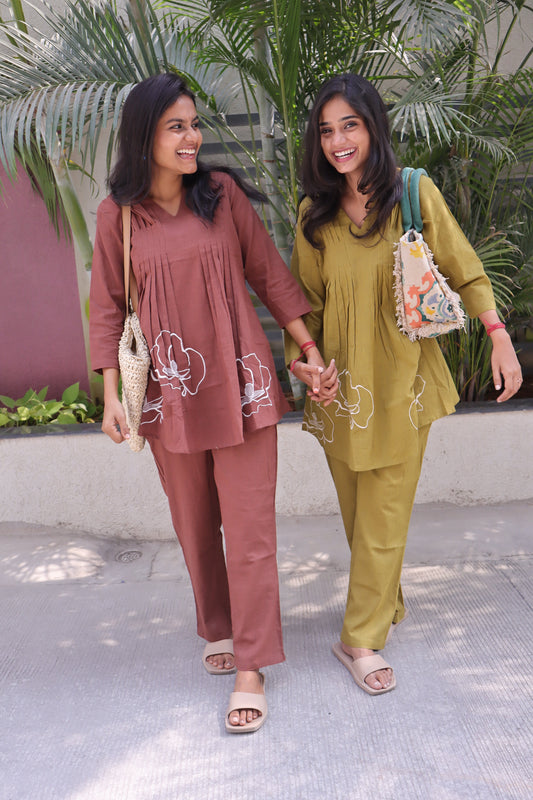 Green Cotton Coord Set with Machine Embroidery | A0177