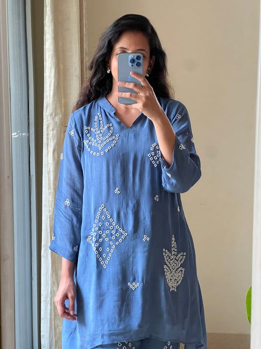 A0412 Mulmul Summer Coord with Embroidery detailing and bell bottoms