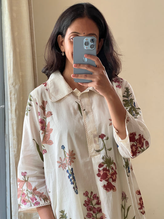 A0452 half white mulcotton hand blocked printed coord set comes with separate lining inside