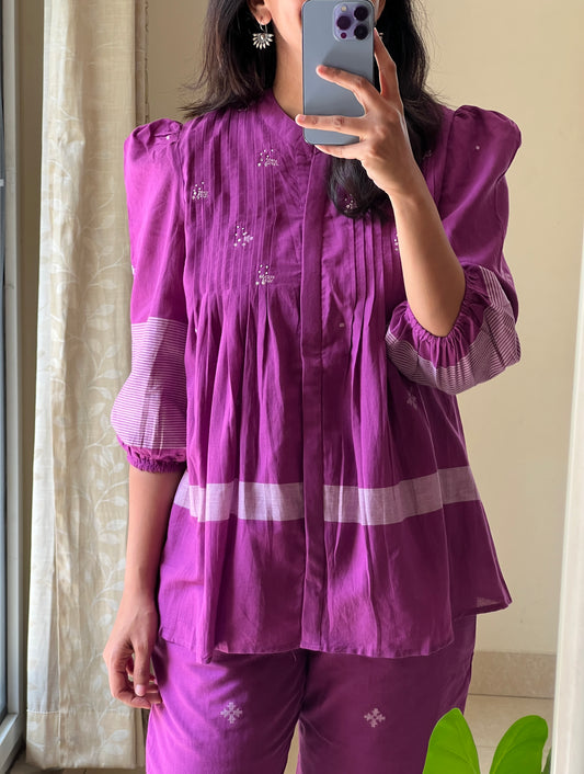 A0509 purple bengal cotton Jamdani coord set