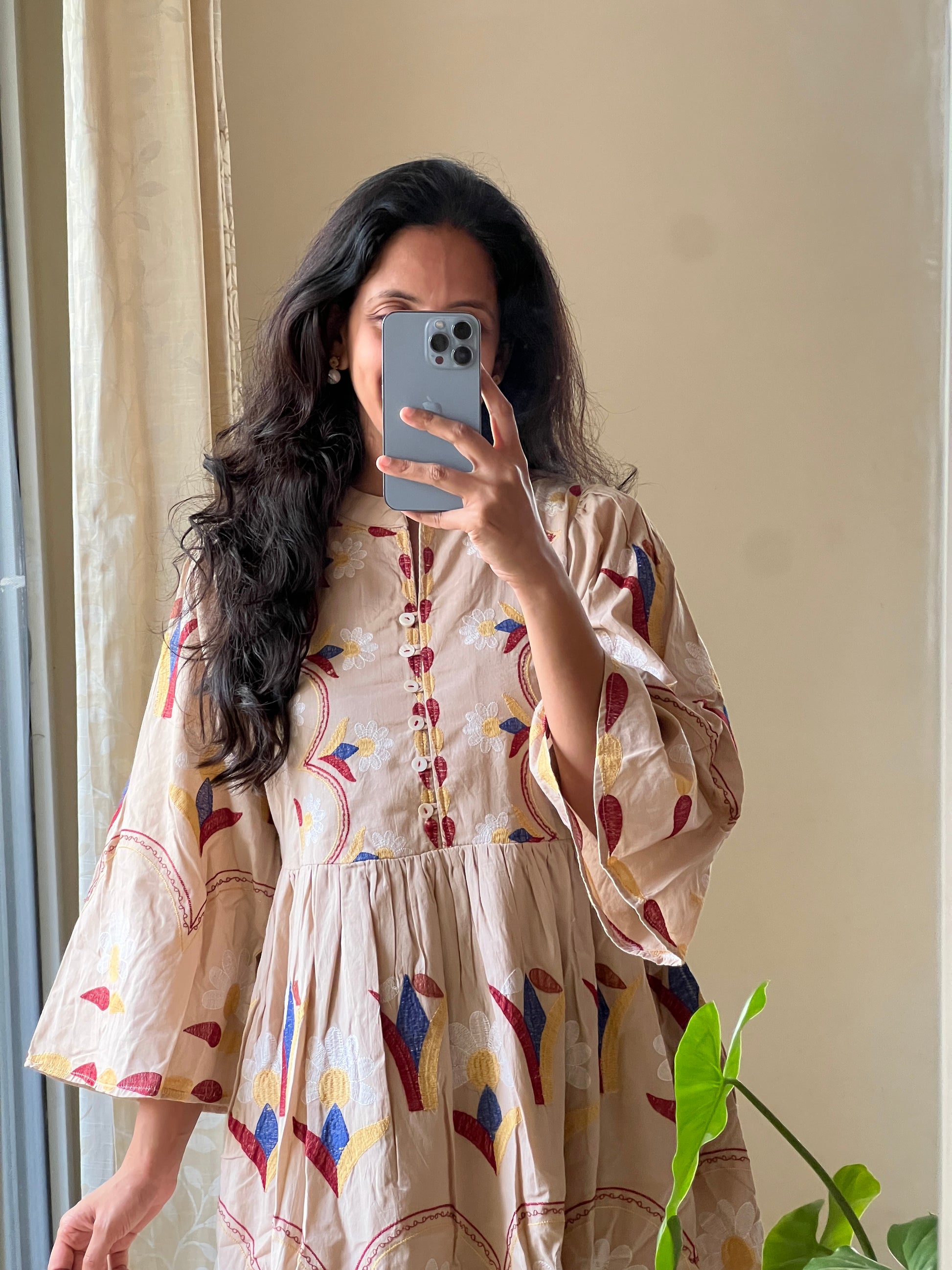 Timeless Elegance – Cream Pure Cotton Short Dress with Embroidery