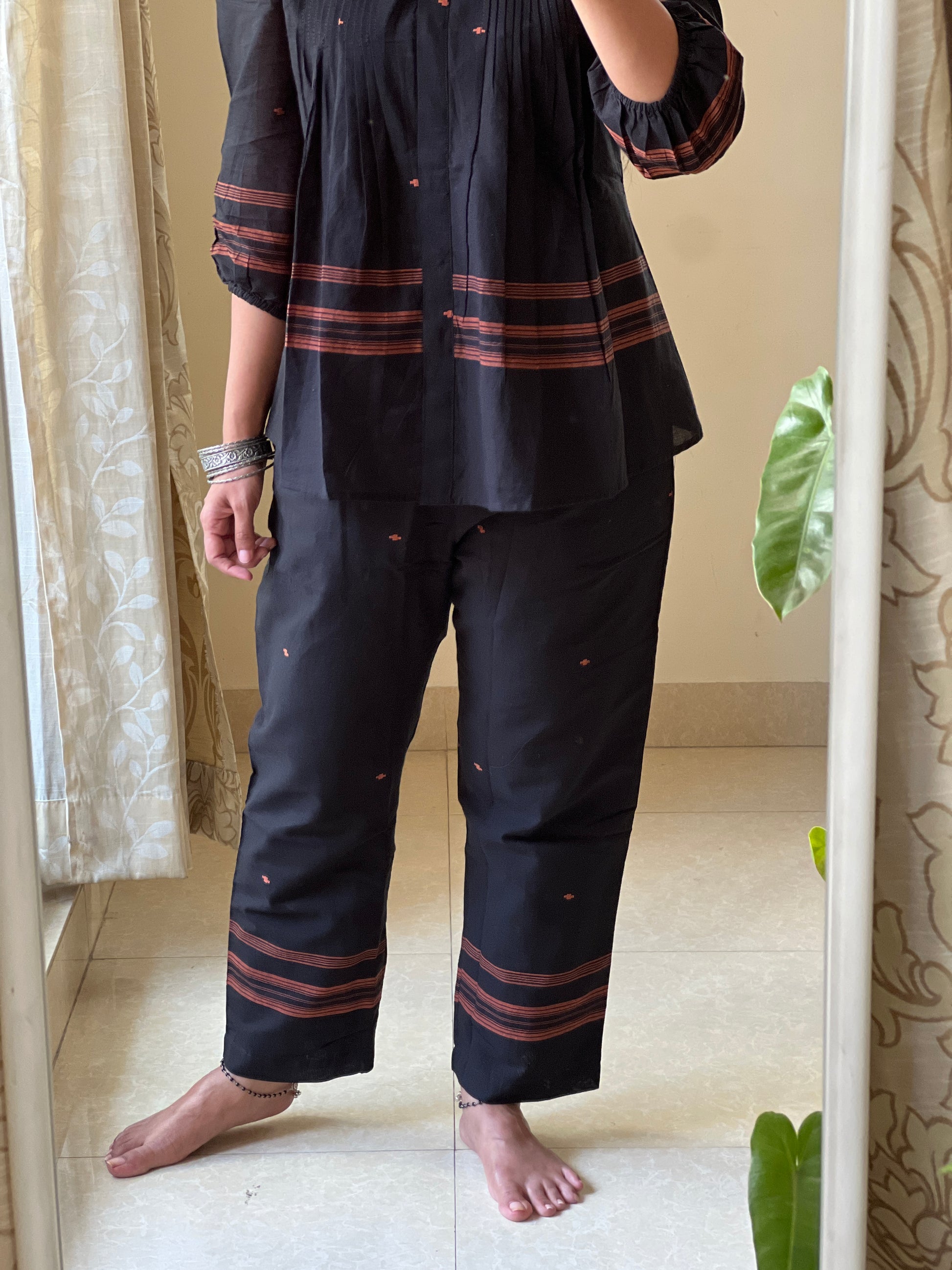 black Bengal cotton jamdani Co ord set Comes with complete lining