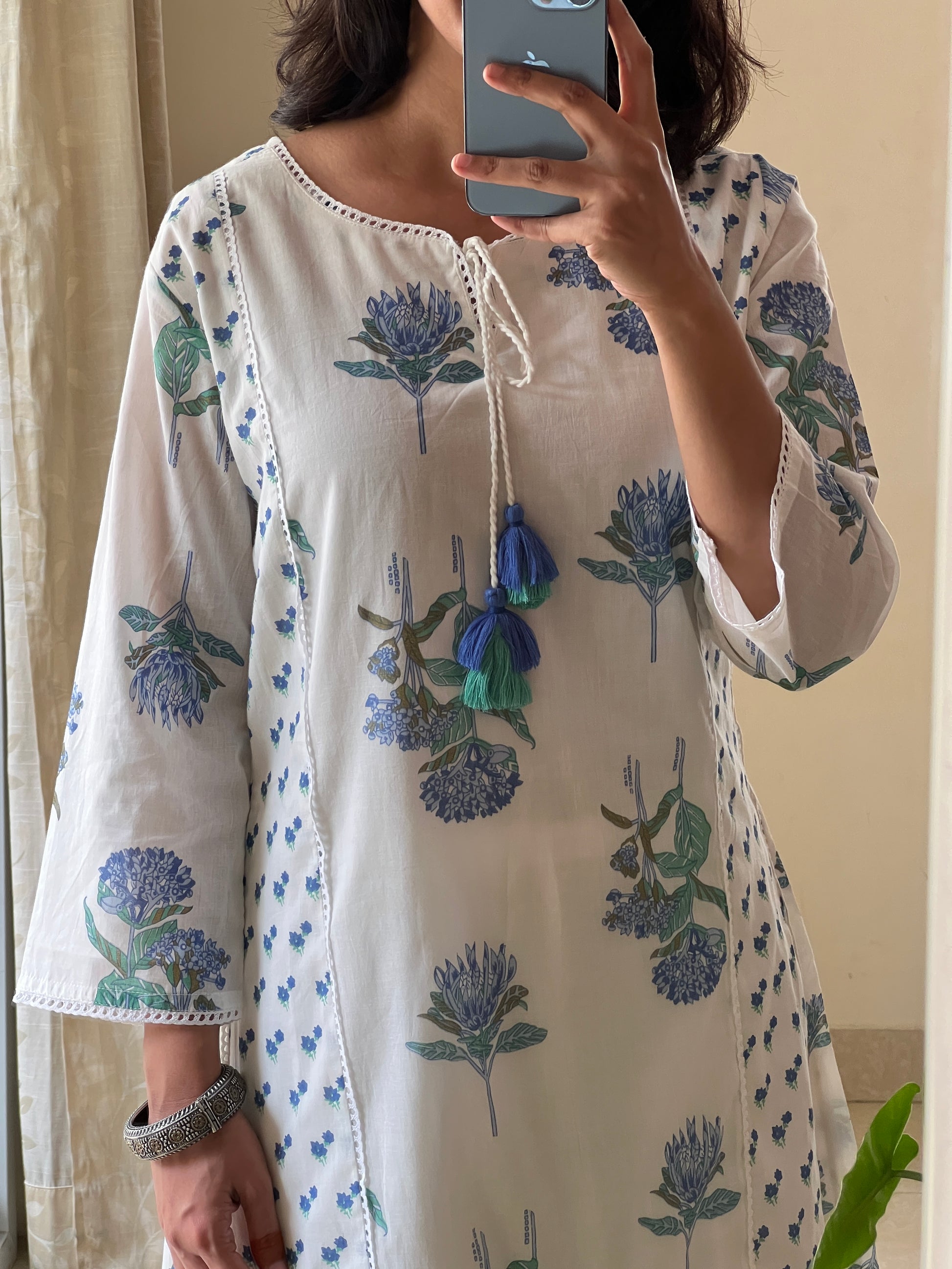 white & blue mul cotton digital floral printed 2 piece dress comes with complete attached lining