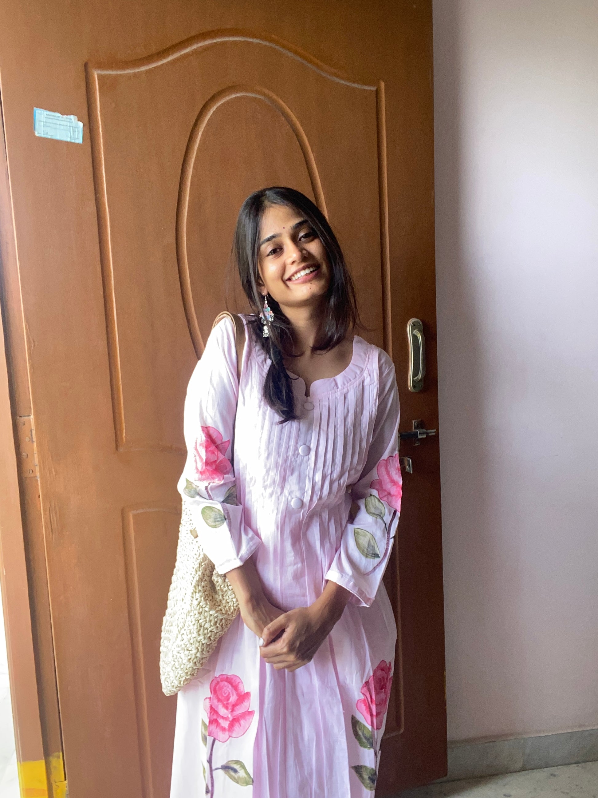 A0473 pink Mul cotton 2pc dress with floral design, best pick for summer