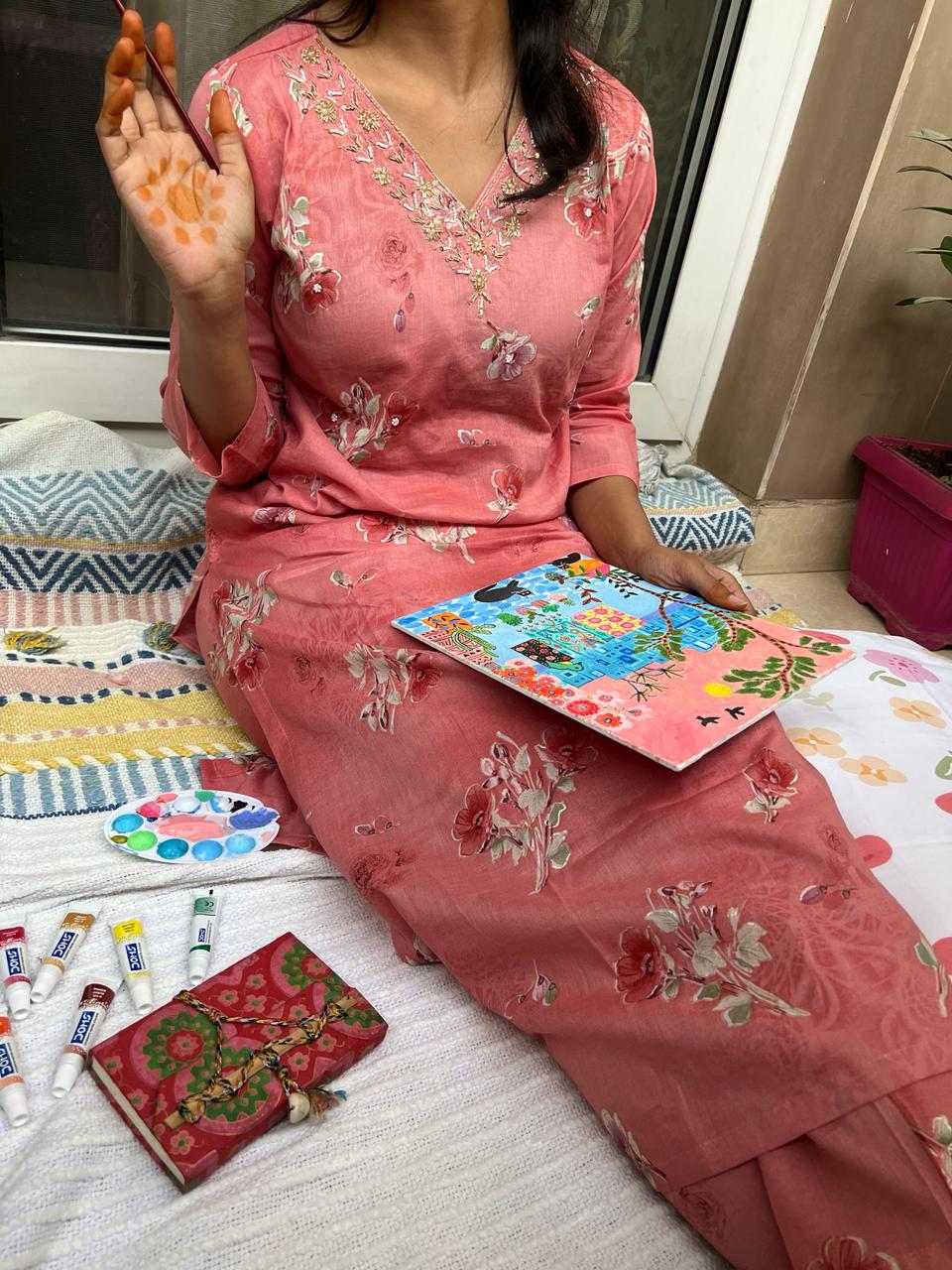 Motti and beads work detailing, mulmul 2pc set