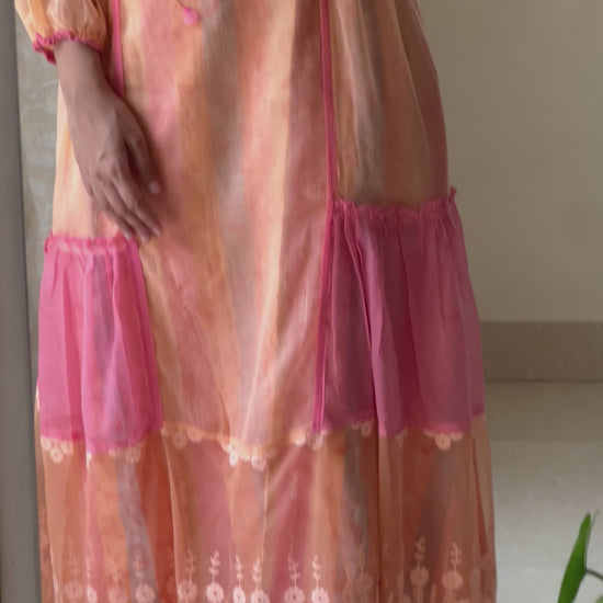 Orange Pure Kota cotton dress comes with printed cotton lining