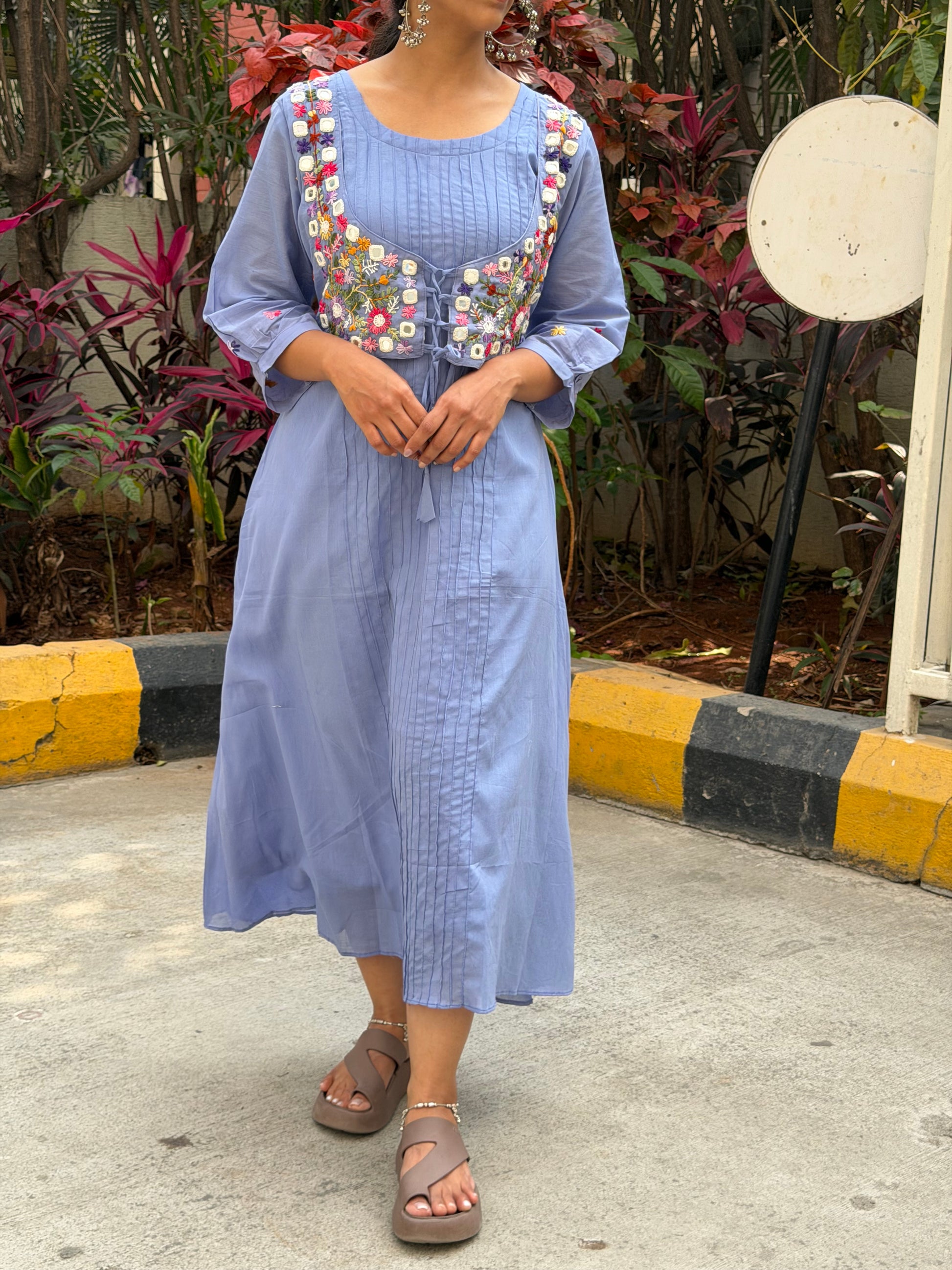 A0586 Lavender dress with mirror and hand emb detailing, comes with cotton lining